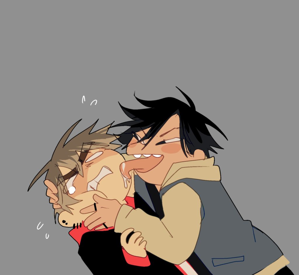 fun fact about these two; theyre both canines. hiro is more like a big mutt, while daiki is a wolf.
